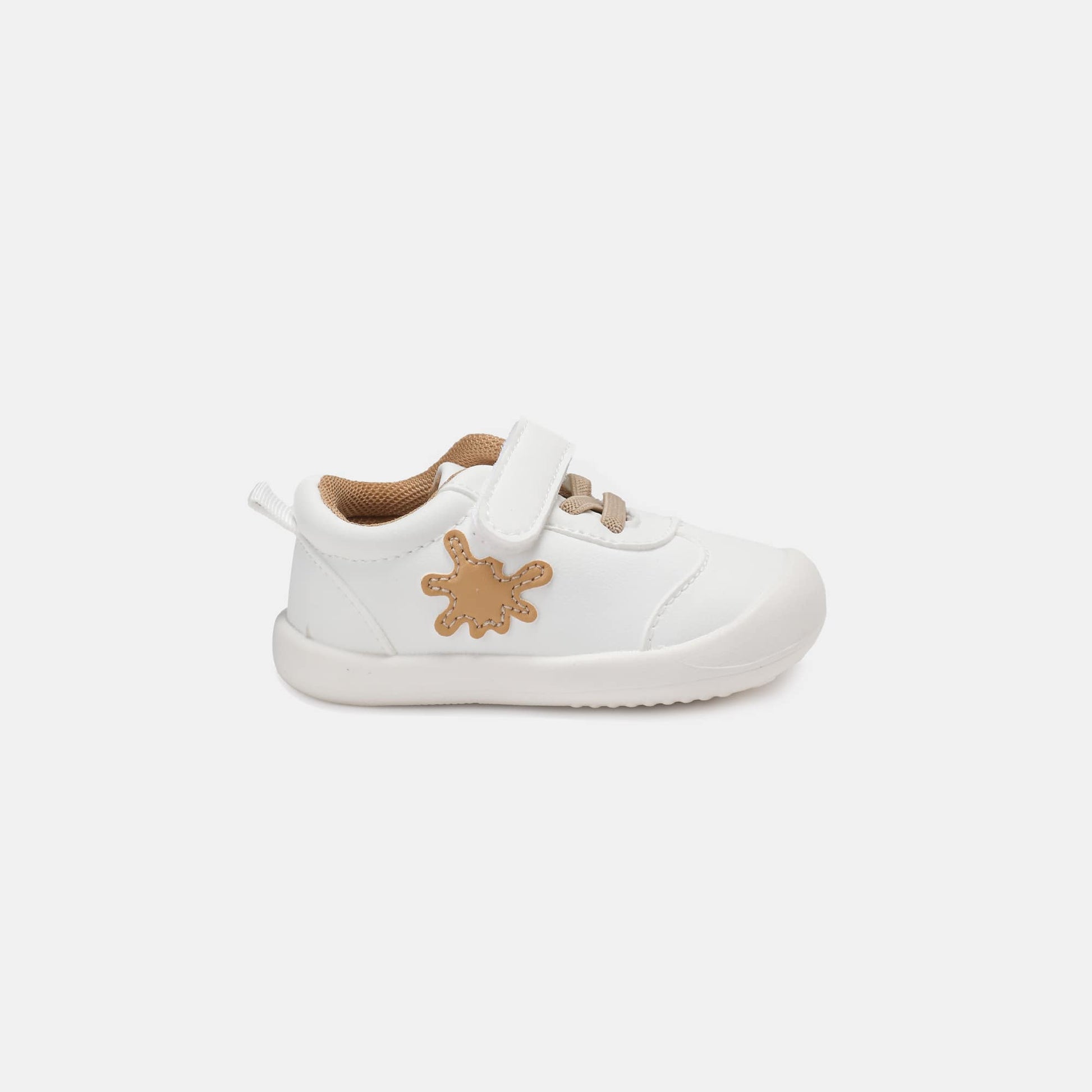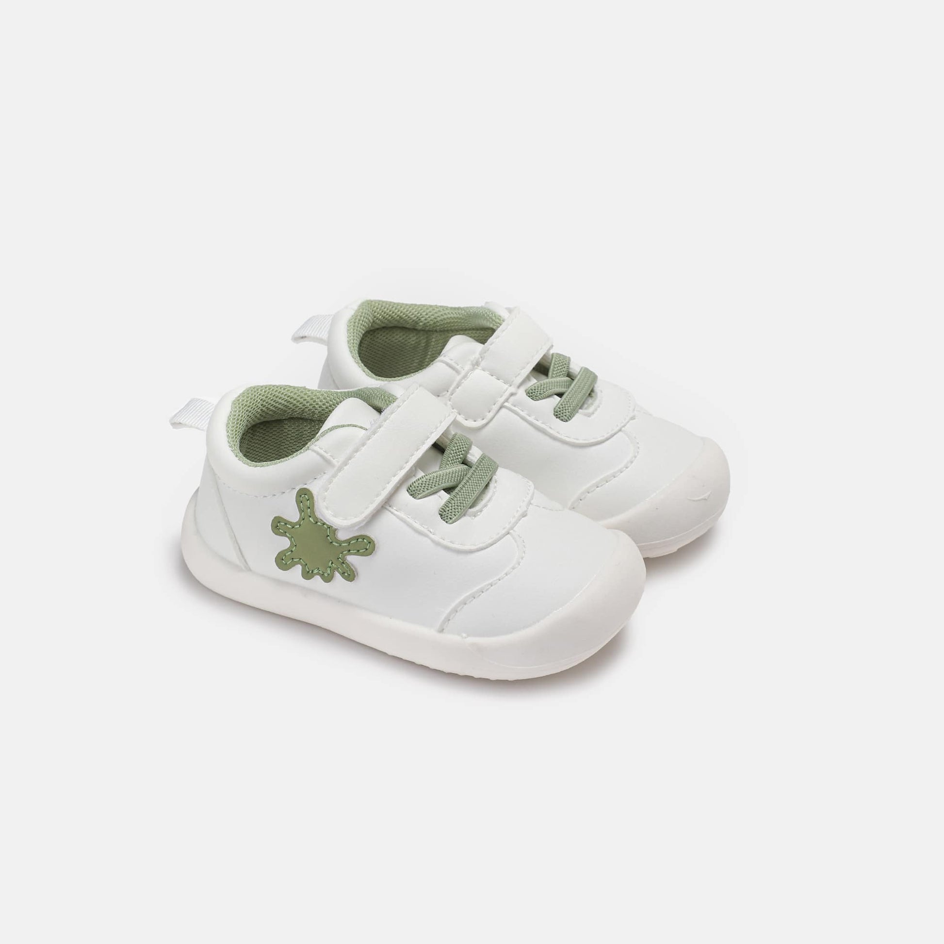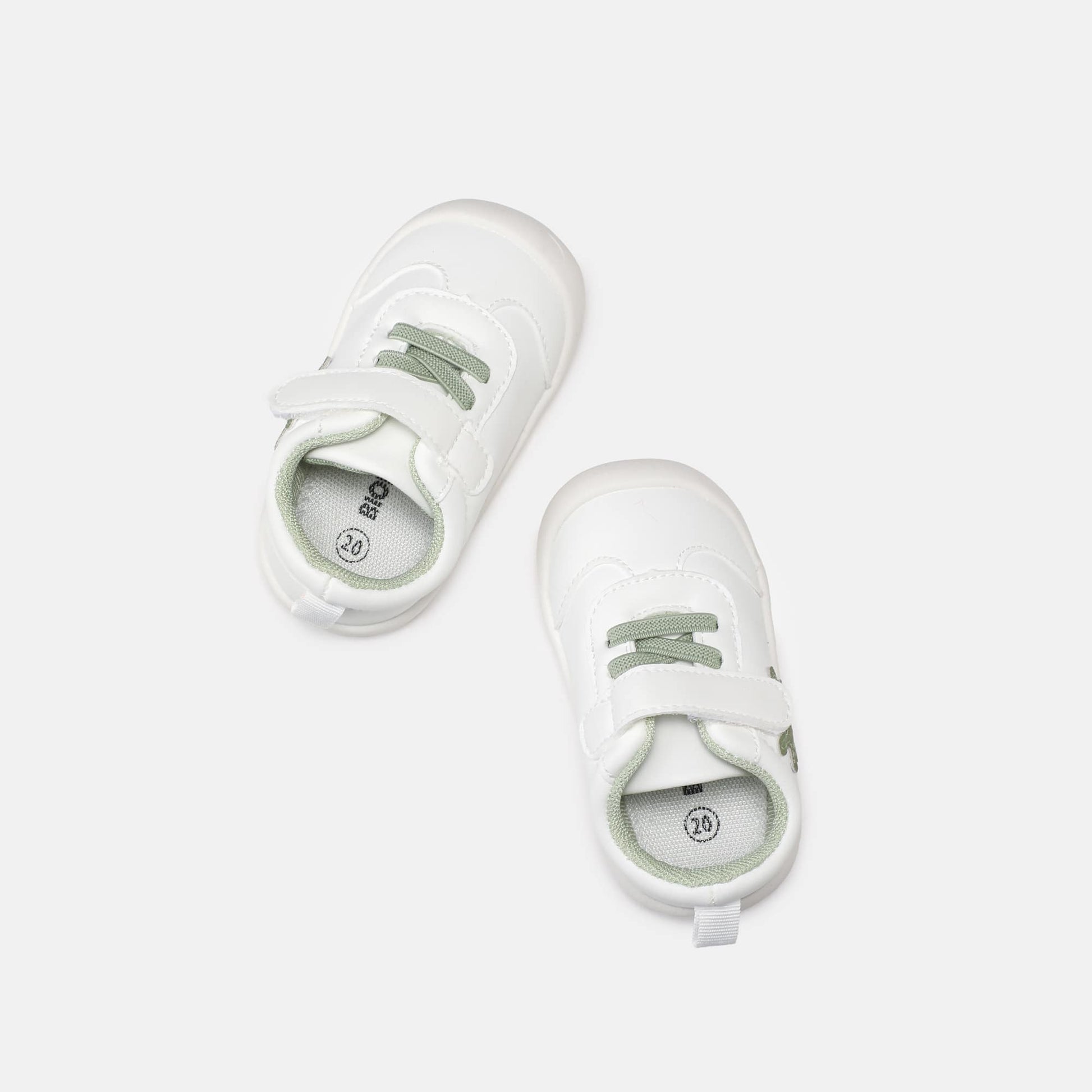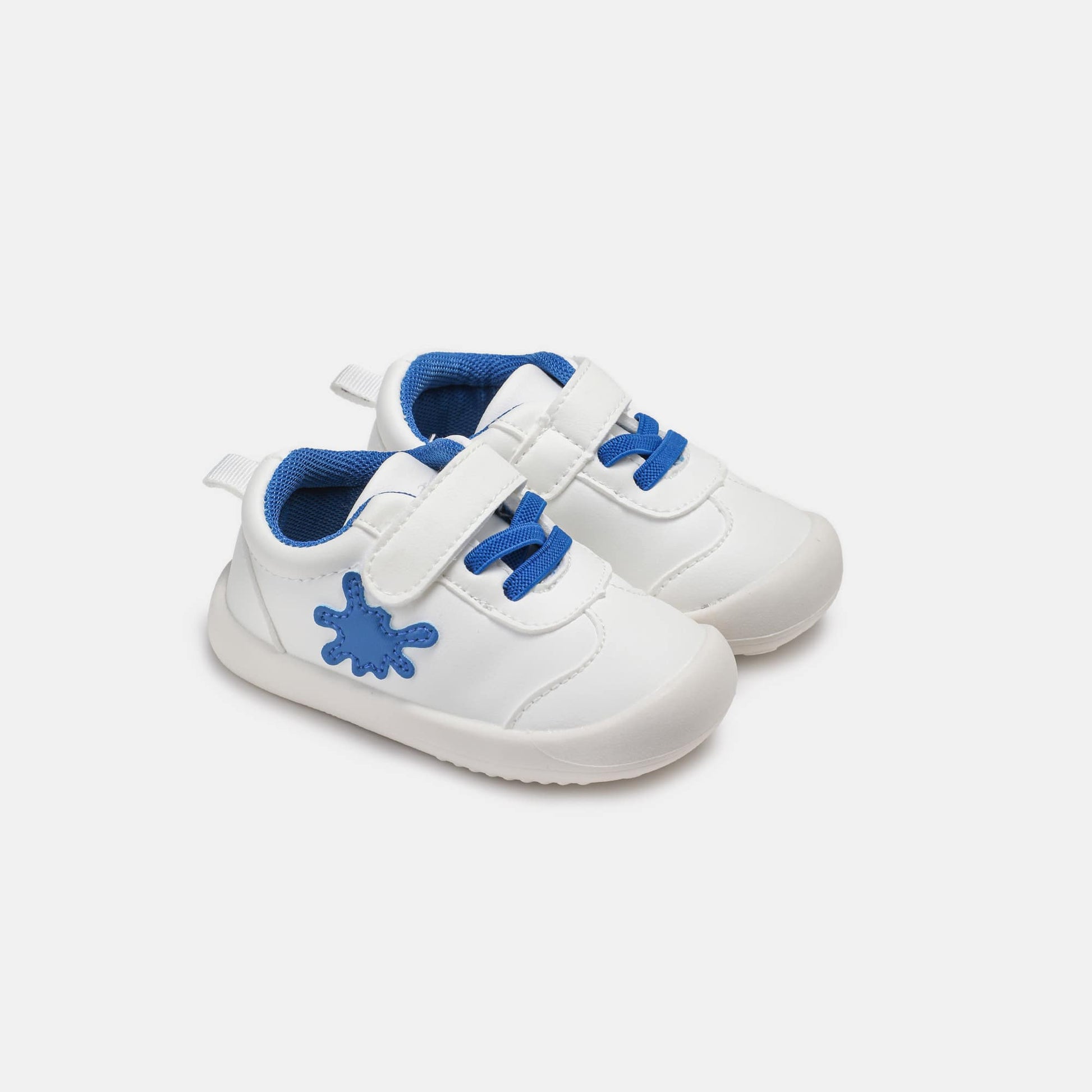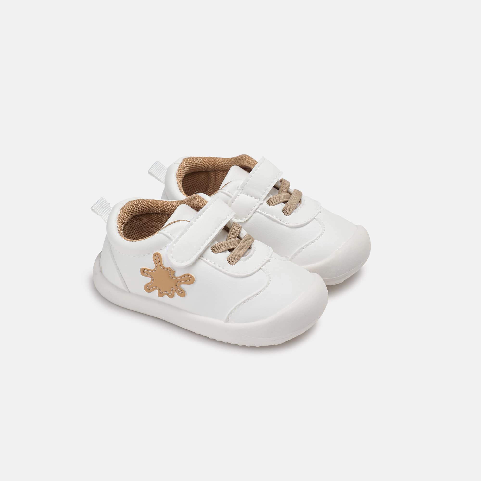 O design com biqueira larga respeita a forma natural do pé, permitindo que os dedos se movam livremente. Isto melhora o equilíbrio, a estabilidade e o conforto, evitando a compressão e favorecendo um desenvolvimento saudável.