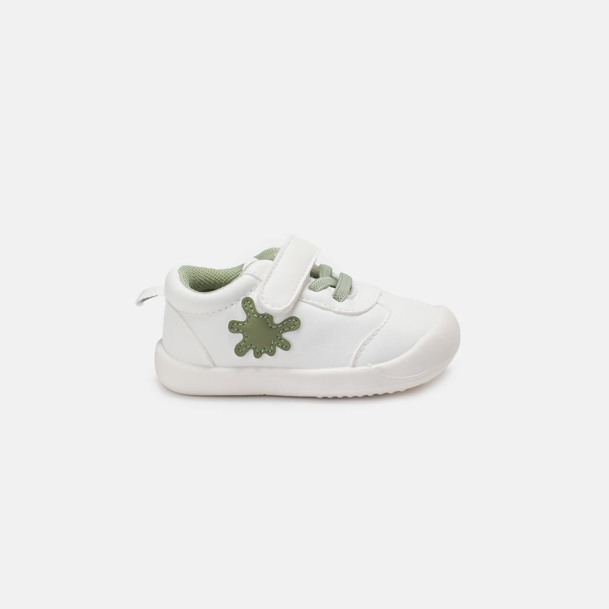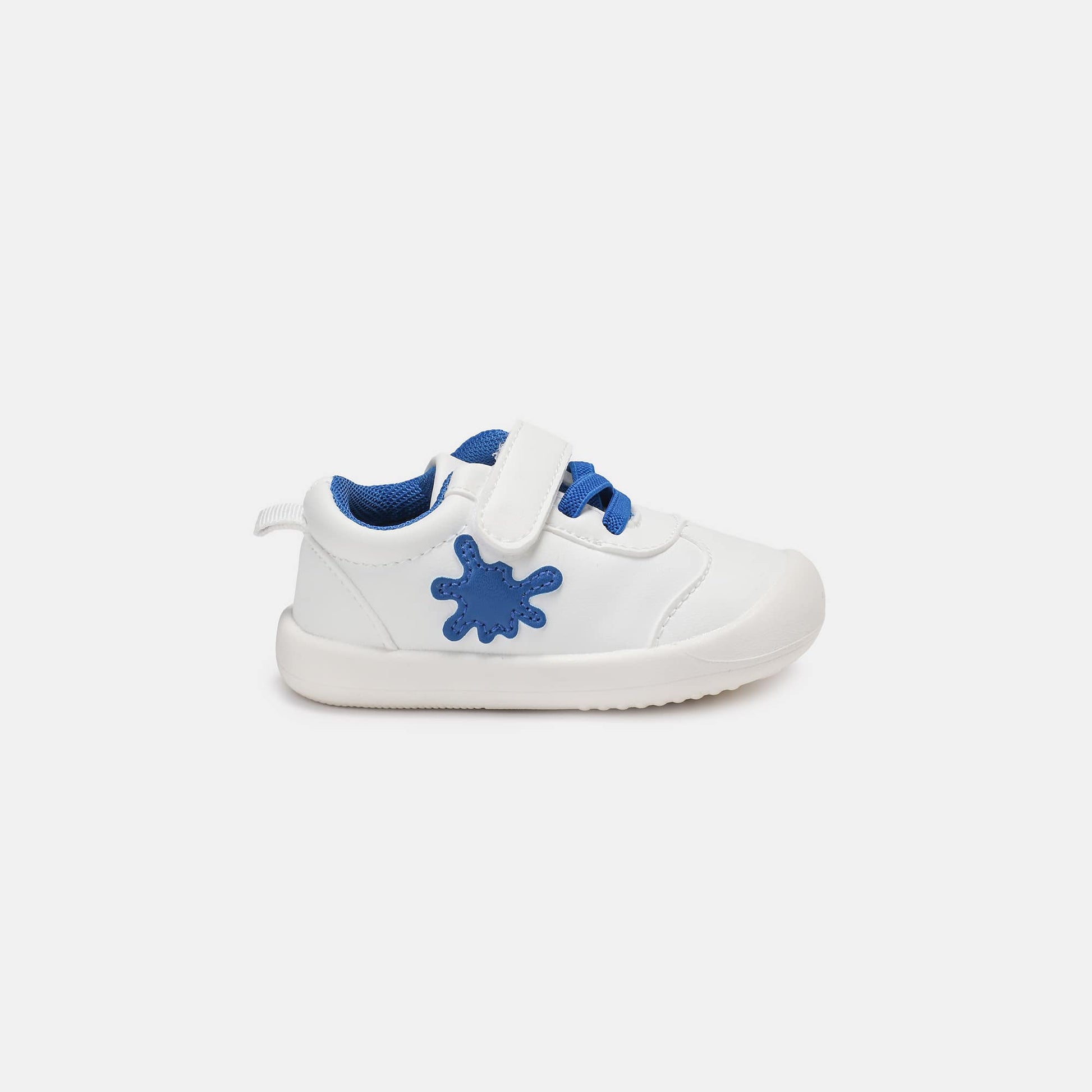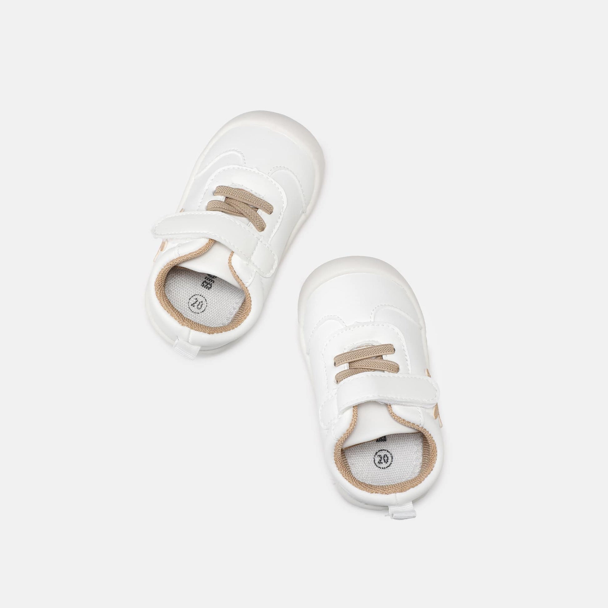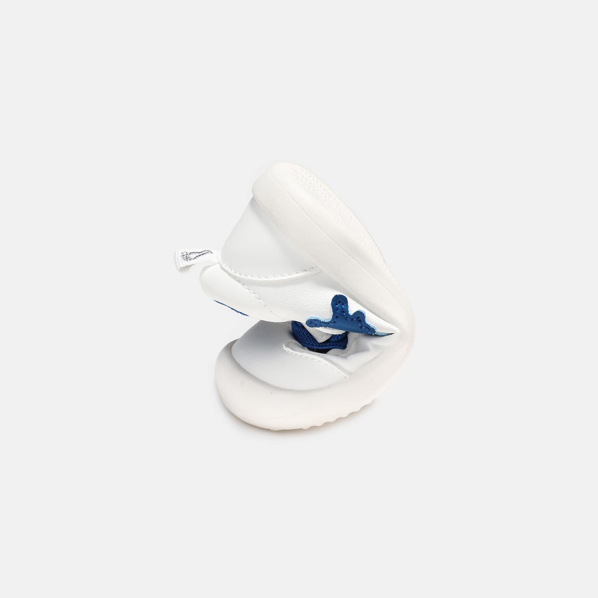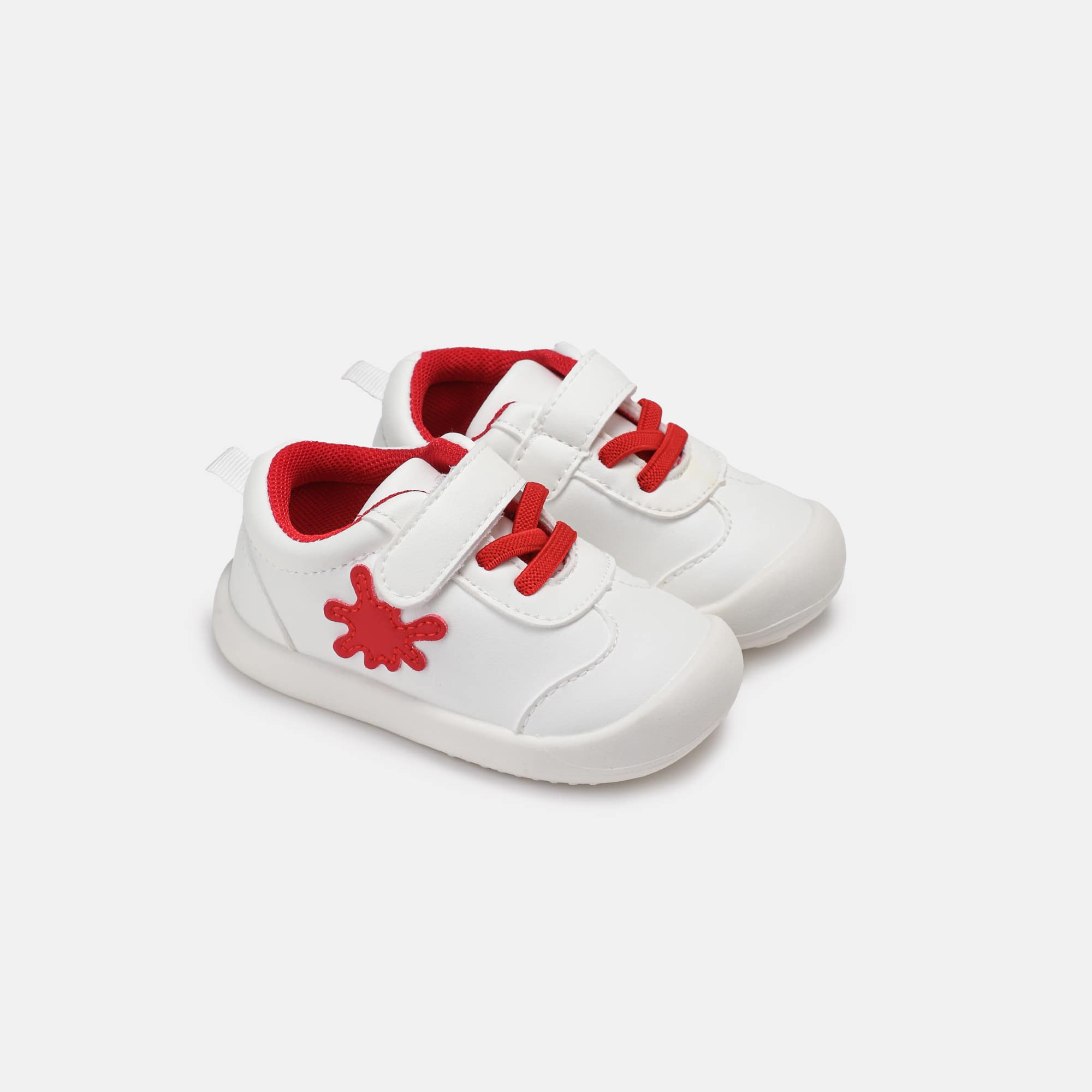 O design com biqueira larga respeita a forma natural do pé, permitindo que os dedos se movam livremente. Isto melhora o equilíbrio, a estabilidade e o conforto, evitando a compressão e favorecendo um desenvolvimento saudável.